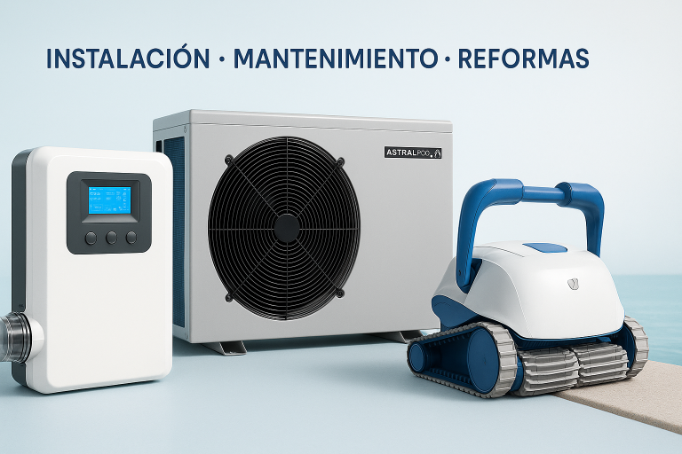 Instalamos en Sevilla y provincia, sistemas de climatización, cloradores salinos de alta calidad, bombas de calor, toldos, limpiafondos, depuradoras, todo para disfrutar tu piscina todo el año.